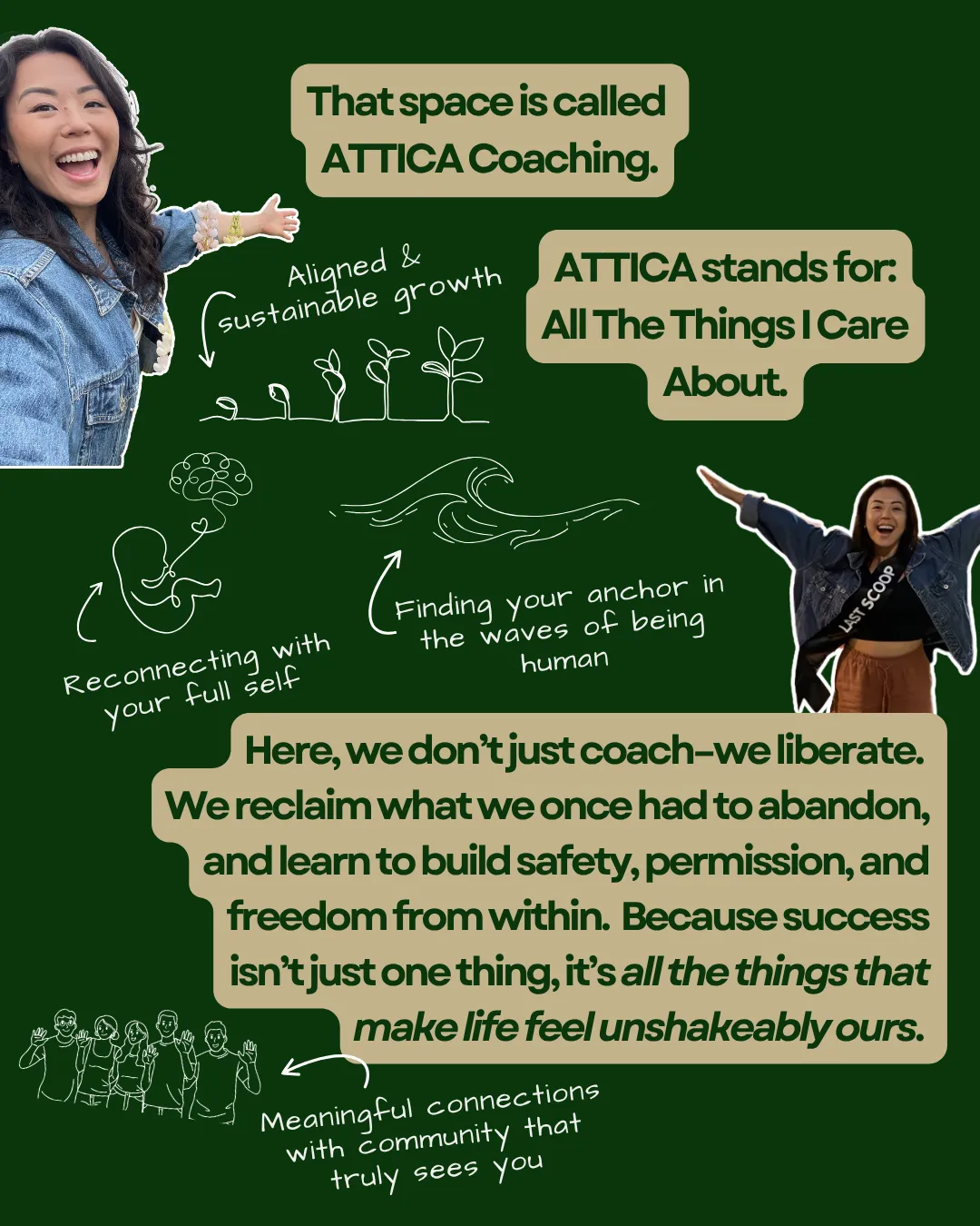 These are not side conversations. They are the very core of your transformation. That's why I launched ATTICA: to fill the gap in coaching practices that overlook cultural nuance, and to ensure Asian and racialized professionals can grow without needing to code switch, explain complex family dynamics or shrink themselves to fit into someone else's mould.