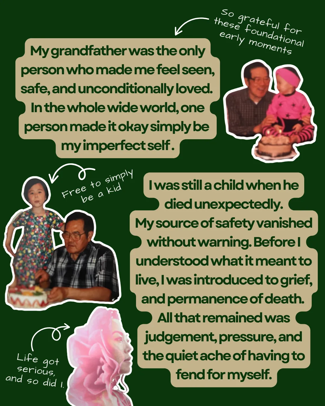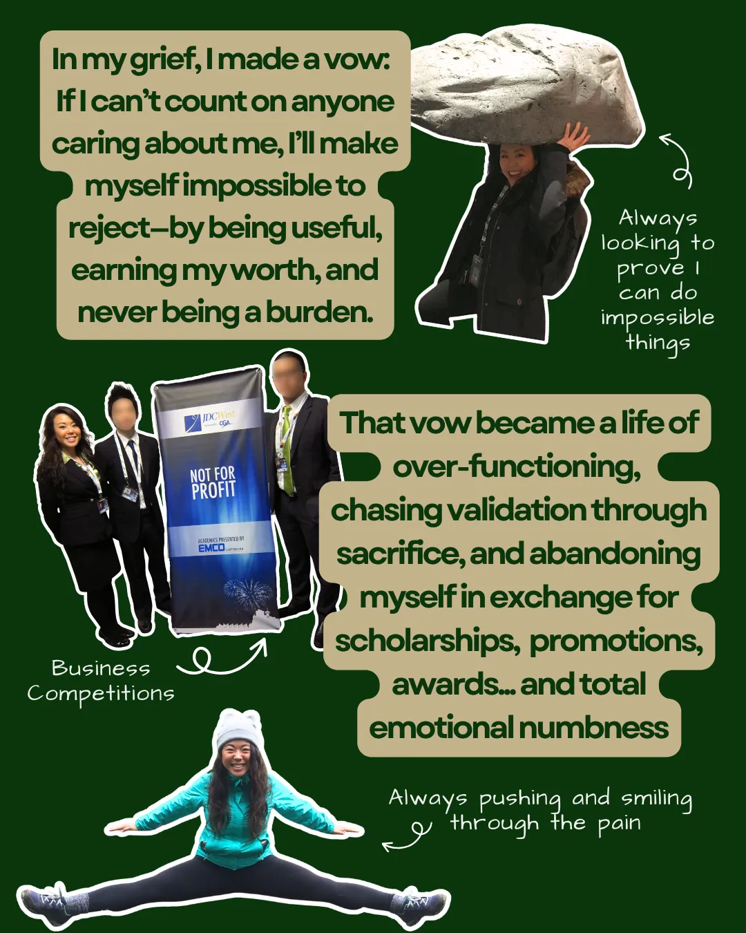 That's when I stopped over-functioning for others and started reclaiming the parts of me that I had abandoned along the way. Now I help high-achieving Asian professionals do the same and realize their true potential isn't going to be found in working harder, but in breaking free from the pressure to prove their worthiness, and starting to live in alignment with who they truly are.