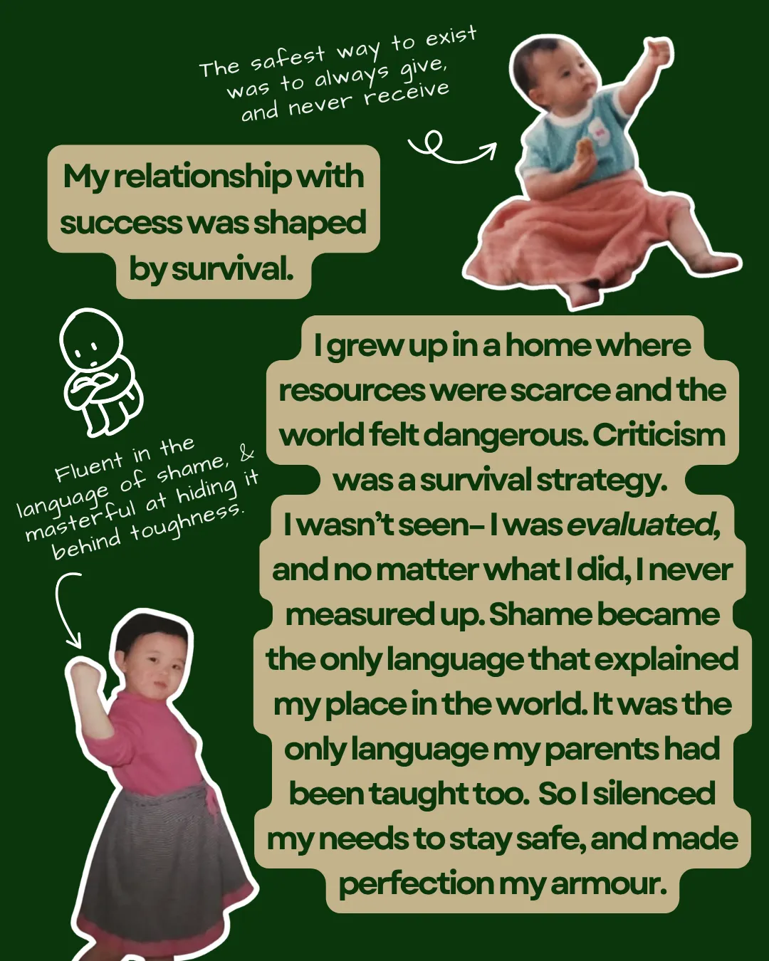 I grew up in a household where my survival depended on staying small, silent, and responsible for everyone's high expectations. Achievement wasn't a celebration, it was armour that meant I earned the permission to exist. And it worked, until it didn't.